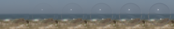 If KHR_materials_transmission is used in combination with KHR_materials_specular, the ratio of transmission and reflection computed from the Fresnel term also depends on dielectricSpecularF0 and dielectricSpecularF90. The following images show a thin, transmissive material.