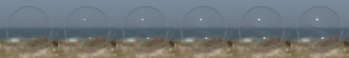 If KHR_materials_transmission is used in combination with KHR_materials_specular, the ratio of transmission and reflection computed from the Fresnel term also depends on dielectricSpecularF0 and dielectricSpecularF90. The following images show a thin, transmissive material.