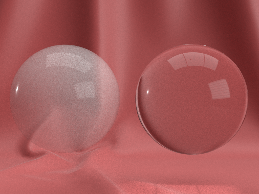 Implementations of this are expected to vary widely, especially in real-time engines, depending on the capabilities of the runtime, but should endeavor to achieve plausibility. Simple implementations may opt to apply prefiltered IBL or dynamic light probes in a refractive manner to simulate scattering while others may choose to sample from a blurred version of the rendered scene while rendering transparency. Raytracers are expected to use more physically correct refraction with a BSDF supporting multi-scattering like the modified Smith model.